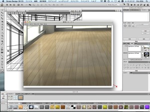 前回、ライトドームの項の最後で、床面にテクスチャーを付けた画像をお見せしましたが、今回はテクスチャーの作り方です。最も利用頻度が高いかと思われるフローリングのテクスチャーを作ってみましょう。