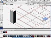 これを利用して、まずは正しいスケールに戻した後、天井高さへ複製します。それから分解し、スキンを使って、立体化します。