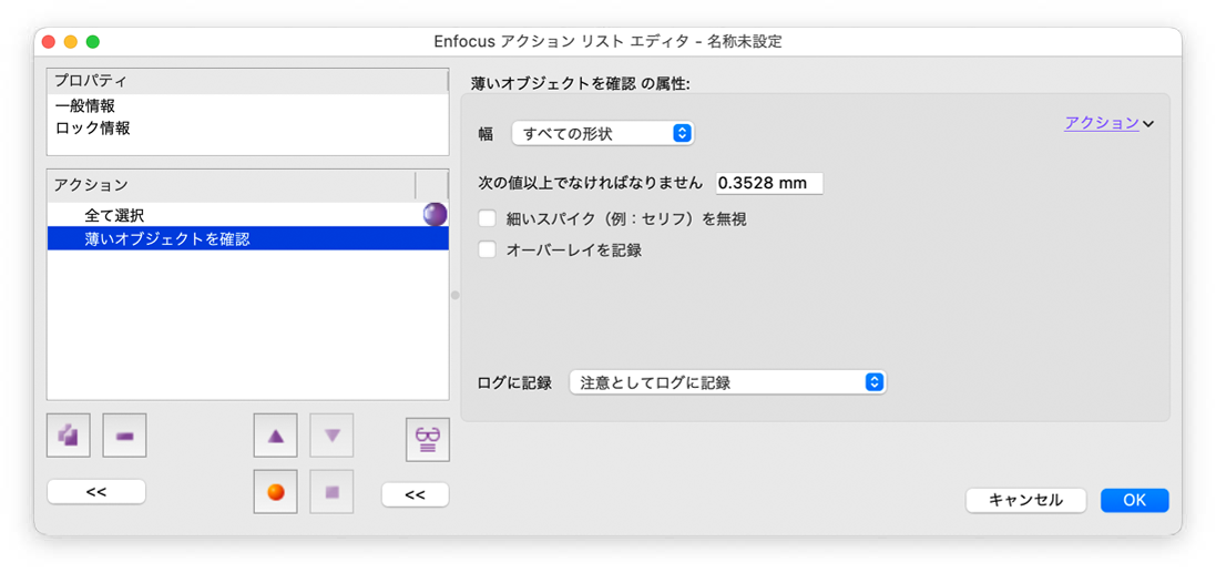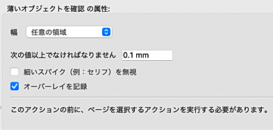 既存の2つのアクション「薄いオブジェクトを確認」と「薄いオブジェクトを選択」には、今回のバージョンで新しいパラメーターが追加されます。