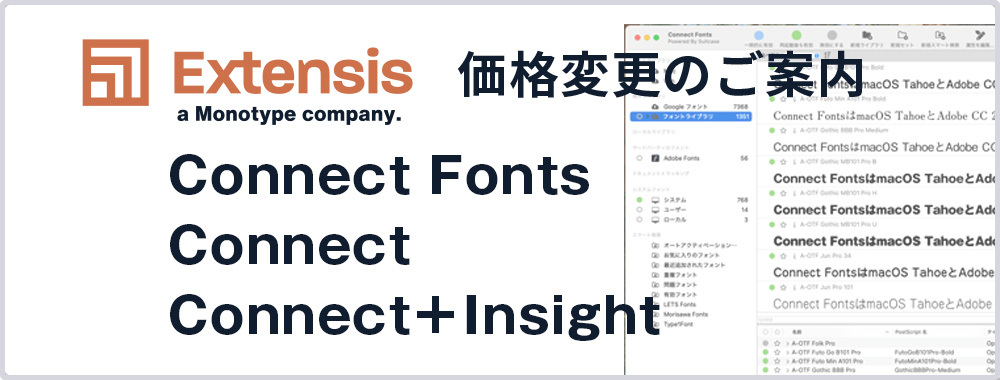 Extensis製品「Connect Fonts」「Connect」「Connect+Insight」価格変更のご案内