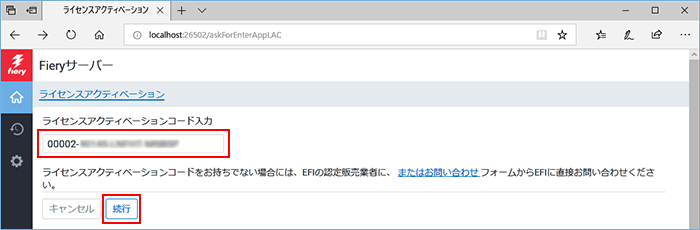 7. ライセンスアクティベーションコードを入力し「続行」をクリックします。