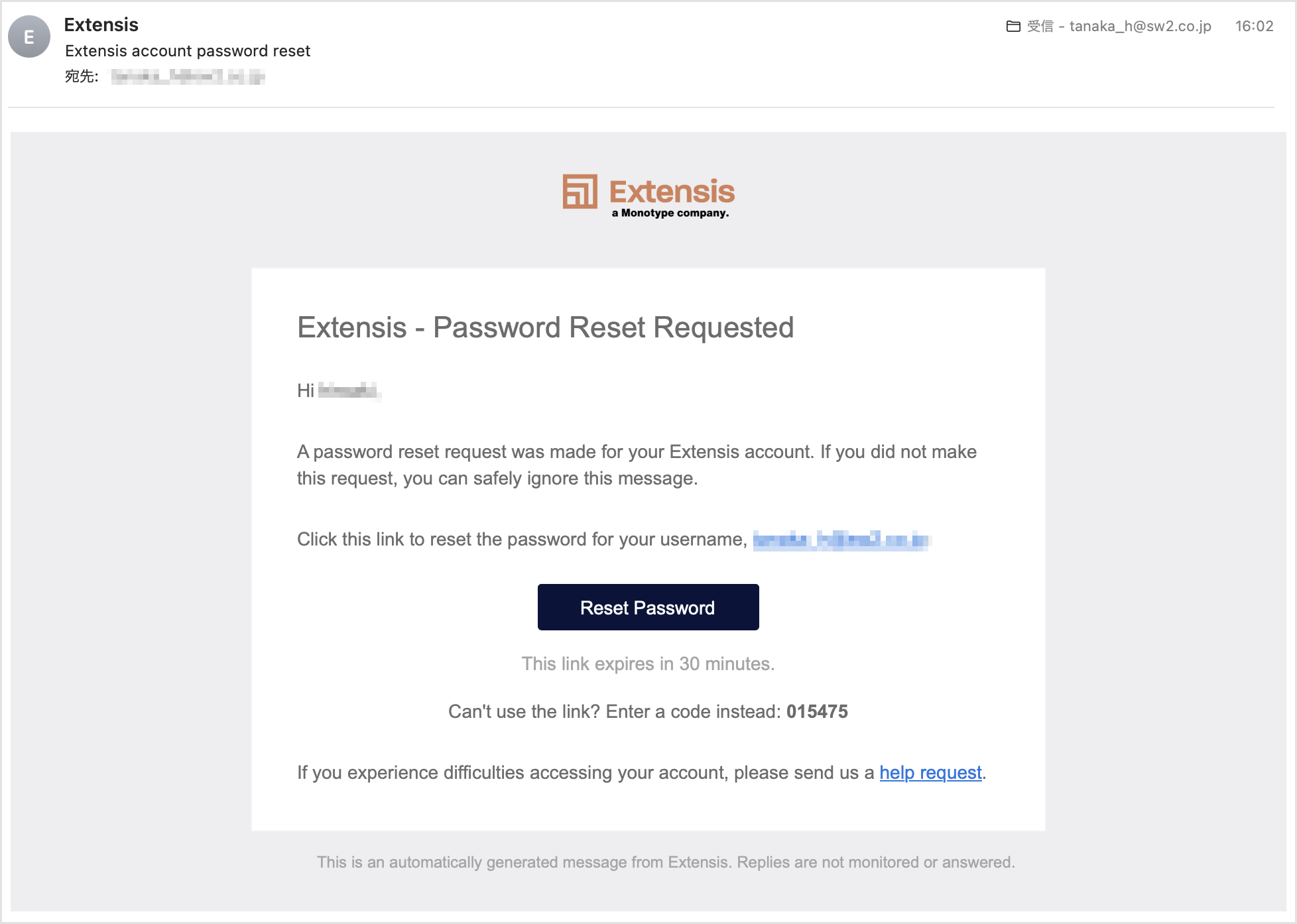 <Connect Fonts>PortfolioのExtensisアカウントパスワードの初期発行または再発行方法は以下の通りです。