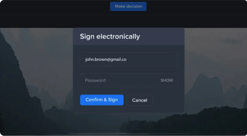 意思決定を電子署名で確実に認証。セキュアで記録に残る承認フローにより、業界規制にもスムーズに対応できます。