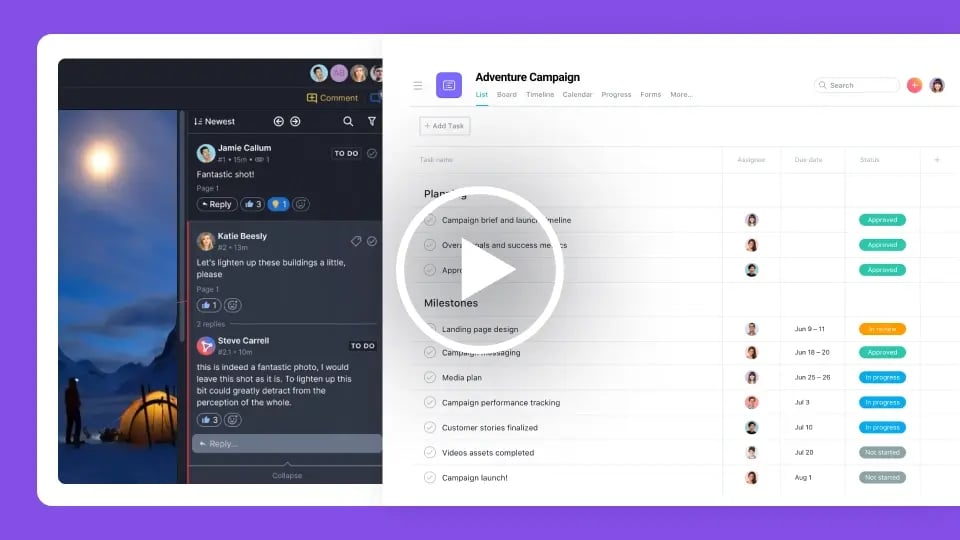 オンライン校正をAsanaに統合することで、クリエイティブアセットに関するフィードバックを一元化。
