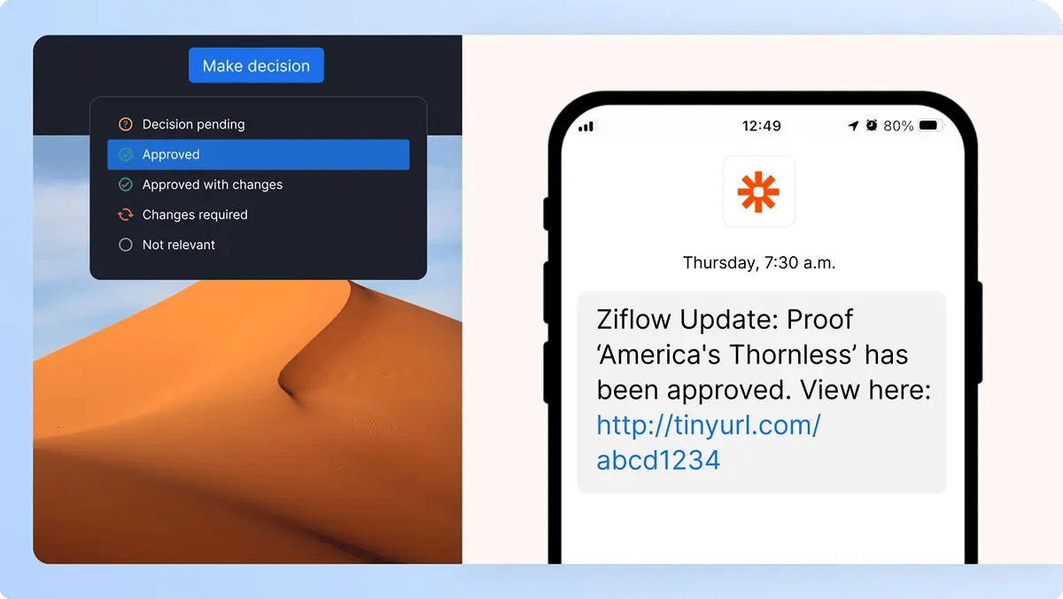 校正の承認状況をSMSで即時に受け取り、どこにいても最新情報を逃しません。