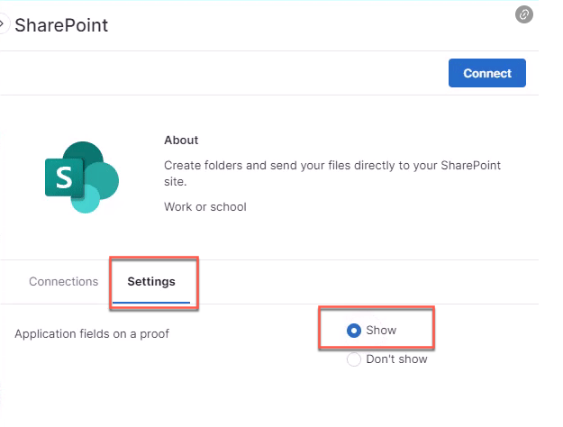 今回のリリースにより、新規に接続されるすべてのアプリケーションについて、「プルーフ上のアプリケーションフィールド」の設定が自動的に「表示」をデフォルトとして適用されるようになりました。
