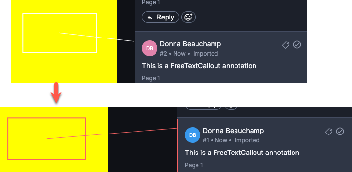 Adobe PDFドキュメントに埋め込まれたフィードバック(現在パブリックプレビュー中)の取り込み機能を強化し、特に「コールアウト形式」のコメントに対する表示を改善しました。