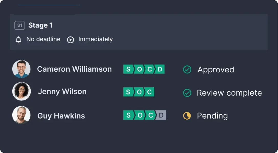 ロールベースの権限管理とリアルタイムのステータス更新により、各ステークホルダーが自分の責任と期限を把握し、遅延を防ぎます。
