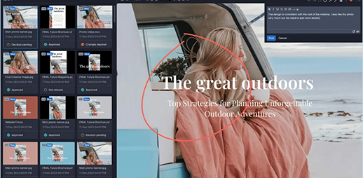 クリエイティブアセット上で直接フィードバックを収集・編集でき、やり取りの手間を減らし、チームの足並みを揃えます。